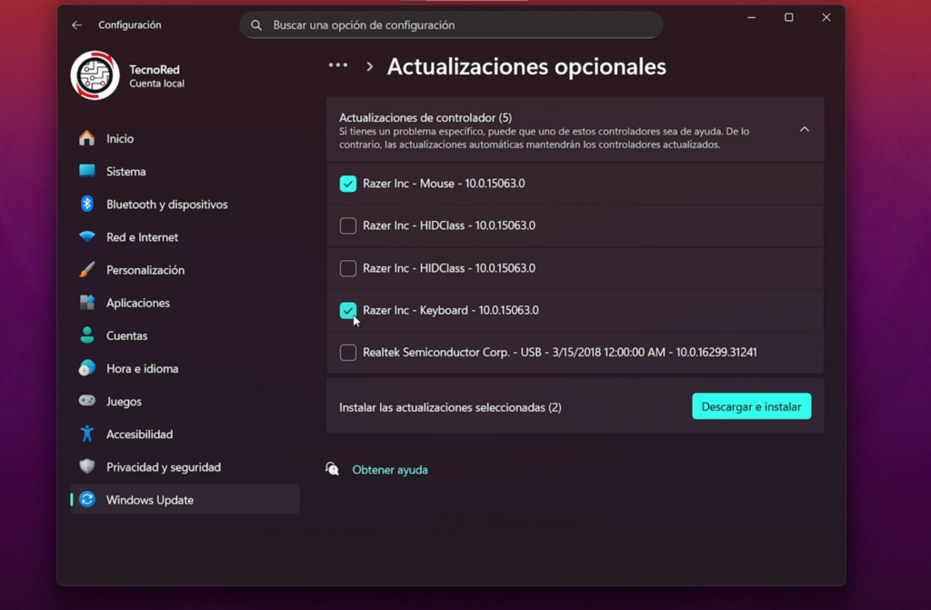 - Revisar las actualizaciones opcionales (drivers, firmware, etc.).