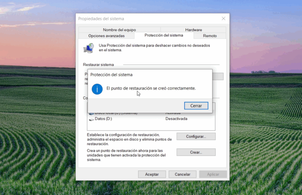 Antes de hacer cambios en el registro, es recomendable crear un punto de restauración: