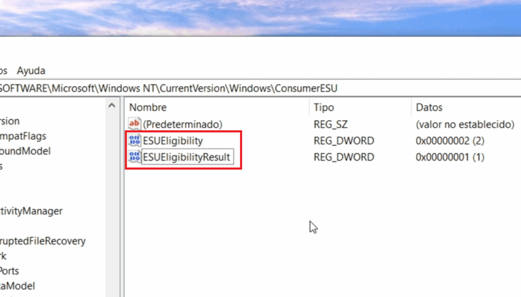 En algunos casos, aunque cumplas con todos los requisitos anteriores, Windows Update no muestra la opción para inscribirse al soporte extendido. Para solucionar esto, puedes forzar la aparición de esta opción mediante un ajuste en el Registro de Windows.